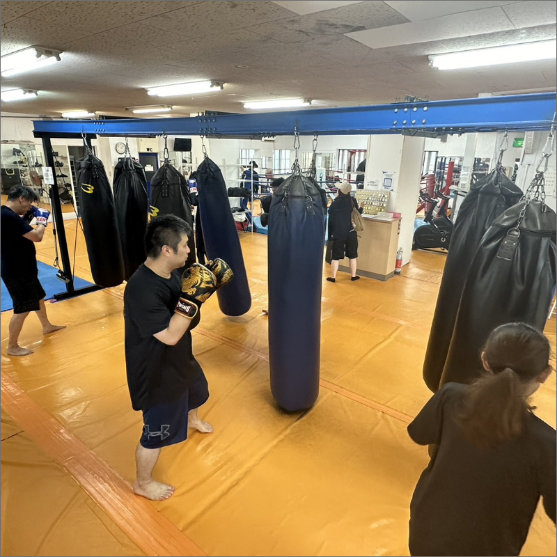 ミット打ちや希望者は攻防・対人トレーニングなどを行います。インストラクターが持つミットに打ち込む快感はサンドバックにはない感覚があります。